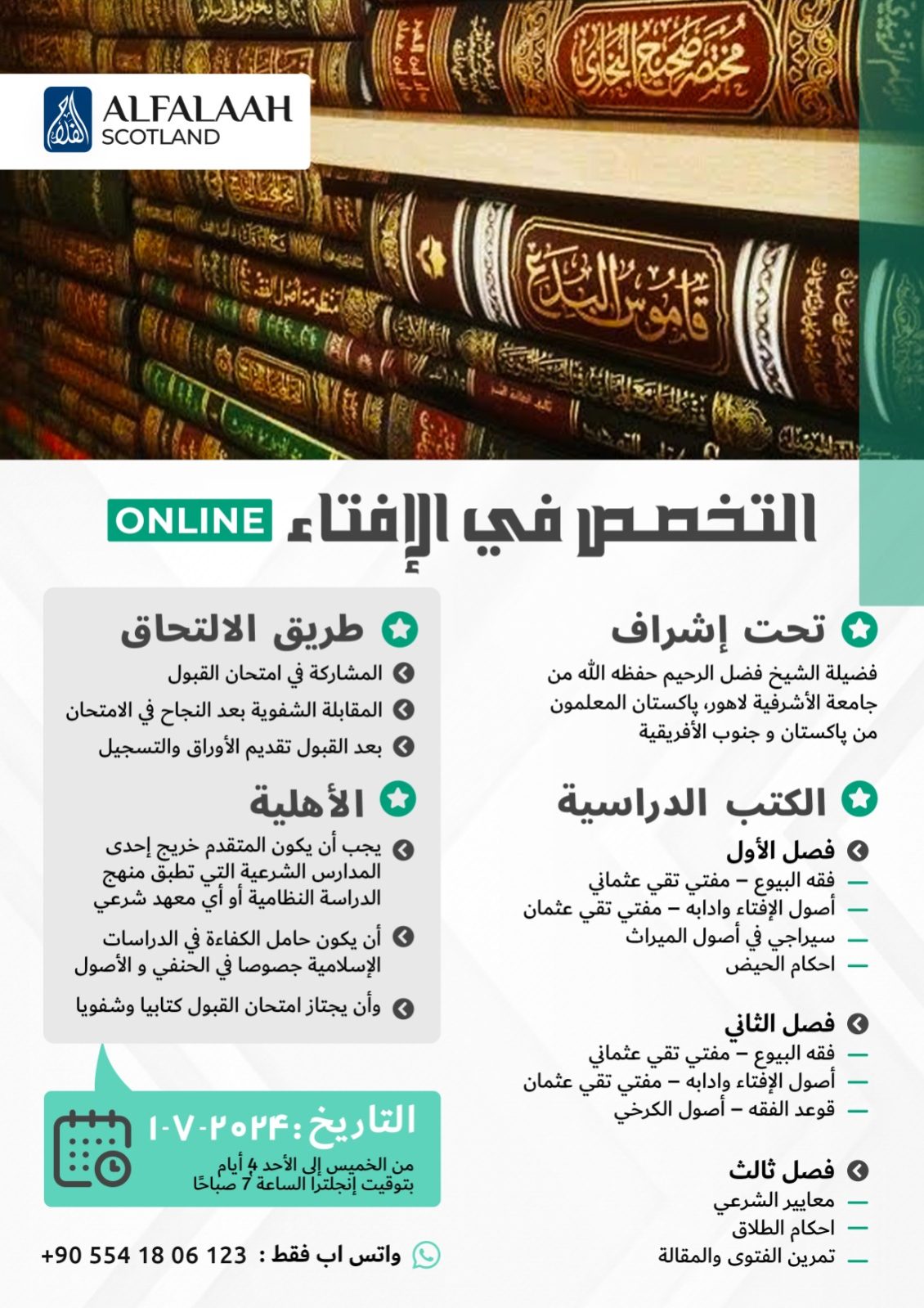 ٢. أن يكون حامل الكفاءة في الدراسات الإسلامية جصوصا في الحنفي و الأصول